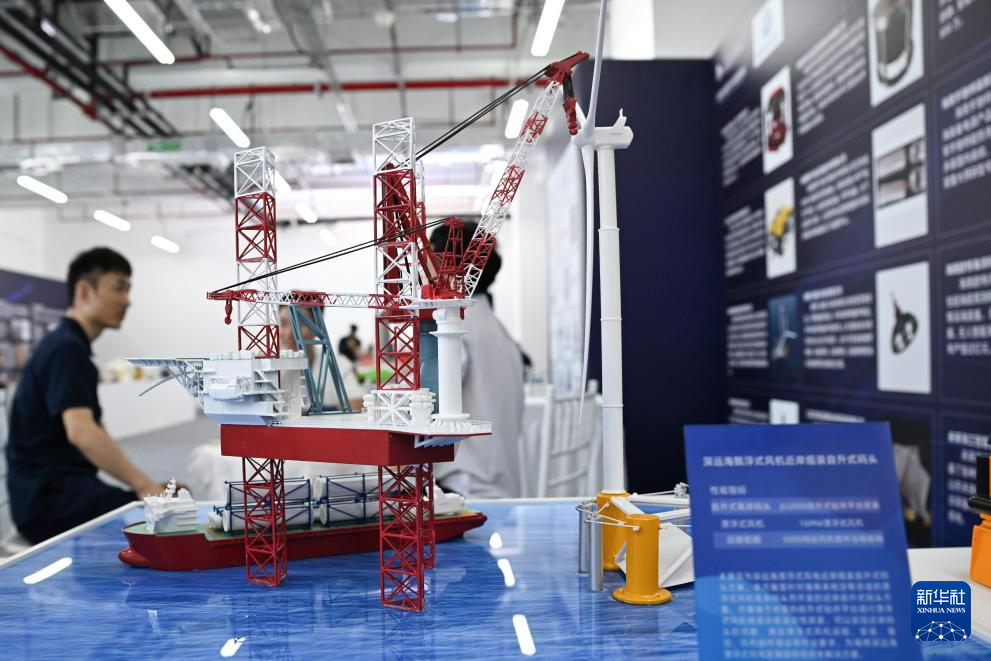 在深海先进技术与装备展览上展出的深远海漂浮式风机近岸组装自升式码头(10月25日摄)。近日,深海先进技术与装备展览在三亚崖州湾科技城举行。据悉,本次装备展览是首届海南自贸港国际科技创新合作论坛暨深海技术创新大会的配套活动,集中展出深海技术与装备领域的成果。新华社记者 杨冠宇 摄