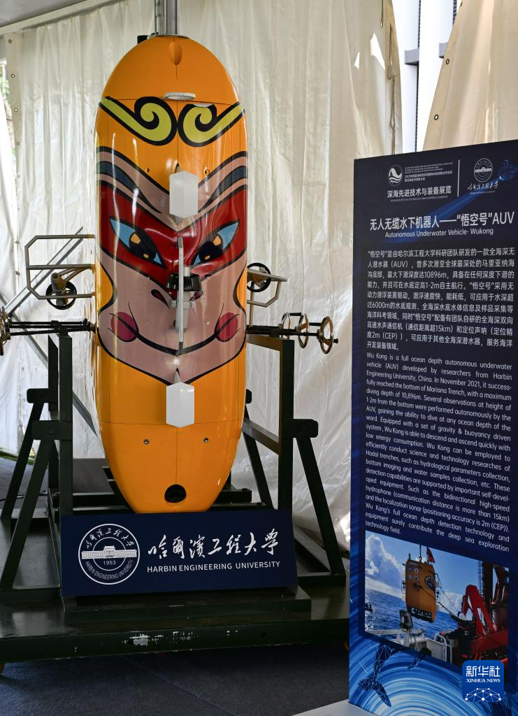 在深海先进技术与装备展览上展出的全海深无人潜水器“悟空号”(10月25日摄)。新华社记者 杨冠宇 摄