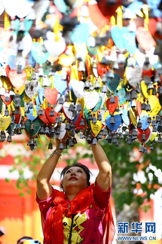 11月13日,游客在三亚南山文化旅游区游览、挂心愿牌。新华网发