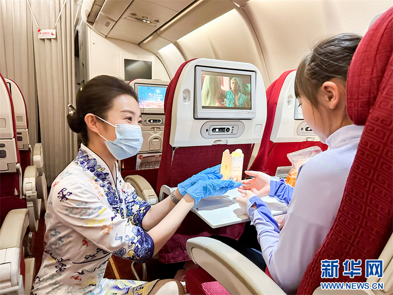 海南航空乘务人员为旅客提供暖心服务。新华网发