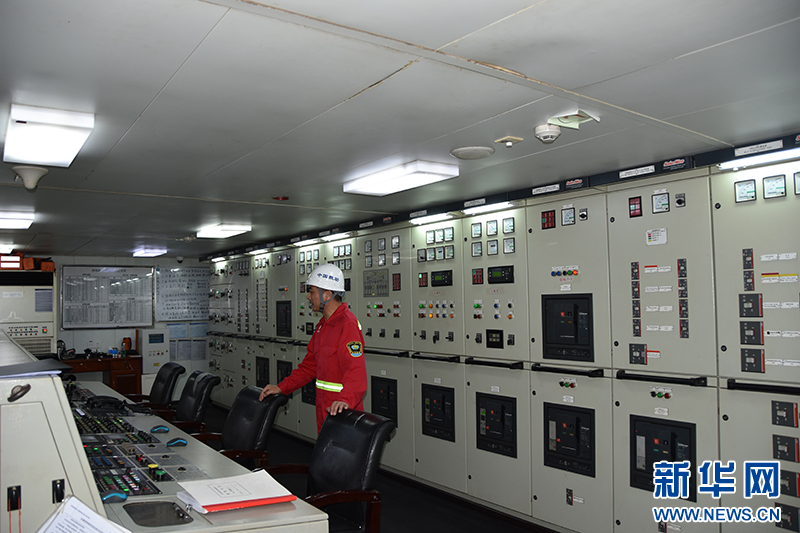 4月9日,轮机长陈华章正在集控室监控机舱设备运行状况。新华社记者 夏天 摄