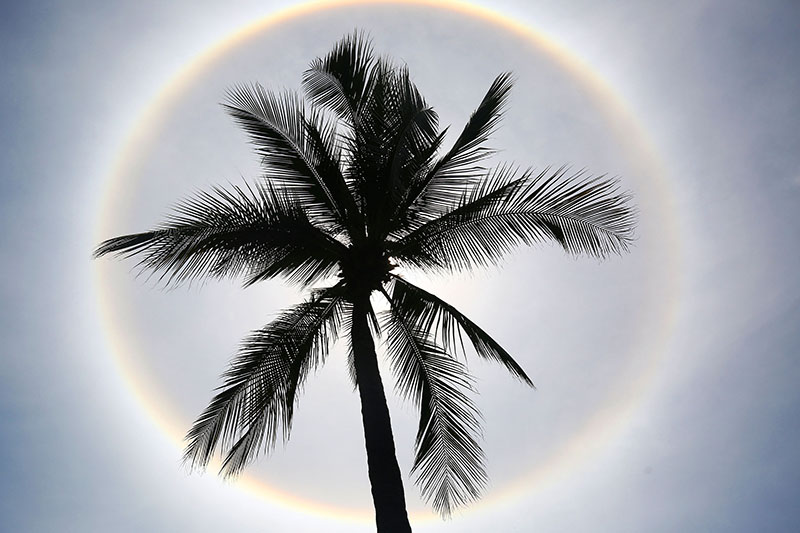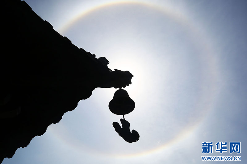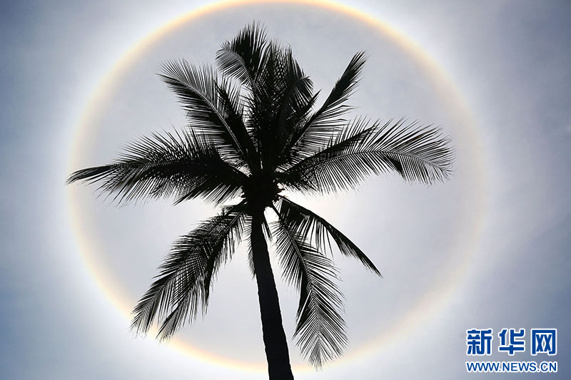 5月10日,三亚南山文化旅游区上空现日晕景观。新华网发(陈文武 摄)