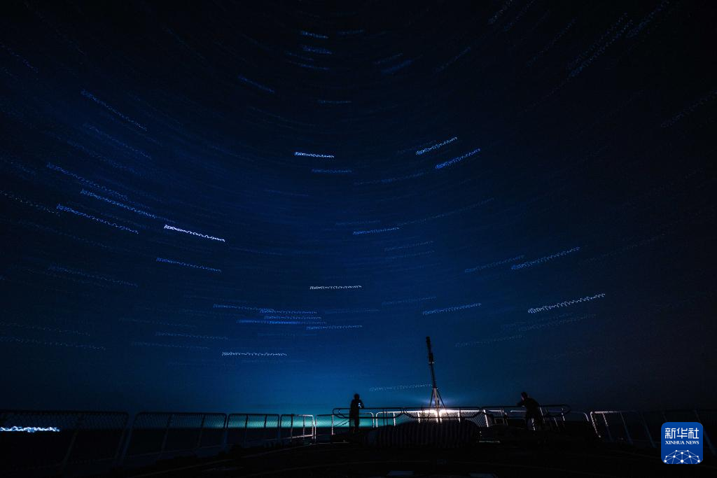 在巡航值守于中国南沙群岛仁爱礁海域的华阳舰上拍摄的星空(4月3日摄)。新华社记者 蒲晓旭 摄