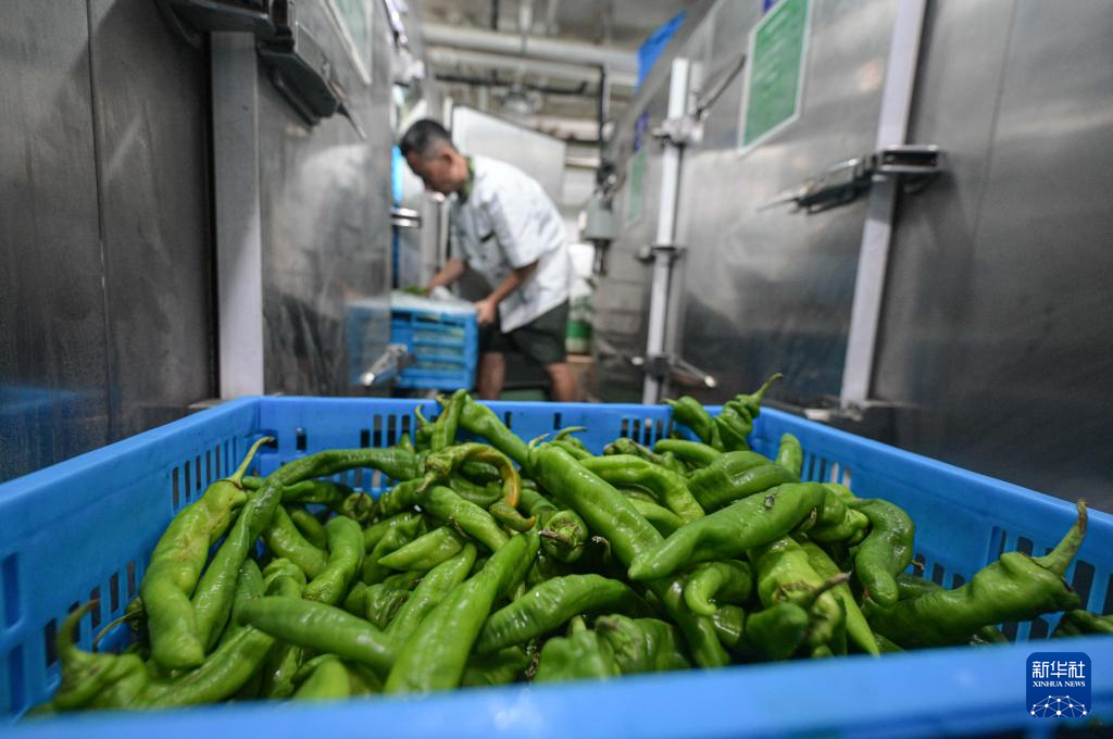 在巡航值守于中国南沙群岛仁爱礁海域的华阳舰上,炊事员从气调保鲜室取蔬菜(4月30日摄)。新华社记者 蒲晓旭 摄