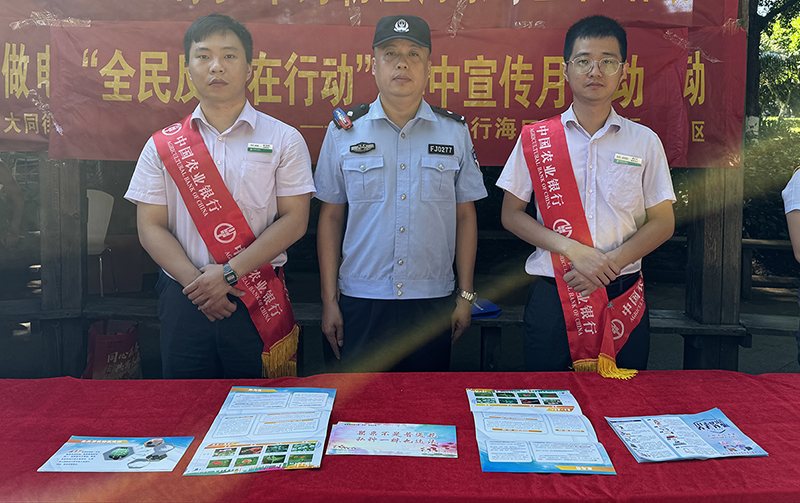 为提高公众对诈骗手段的认知,增强防范意识,营造安全稳定的金融环境,近日,中国农业银行海口龙华支行以“警惕诈骗新手法,不做电诈工具人”为主题,通过网点阵地宣传,以及进学校、进企业、进农村、进社区、进家庭“五进”宣传路径,多渠道开展“全民反诈在行动”集中宣传月活动,织密反诈“防护网”。