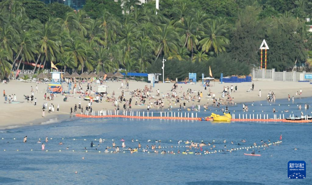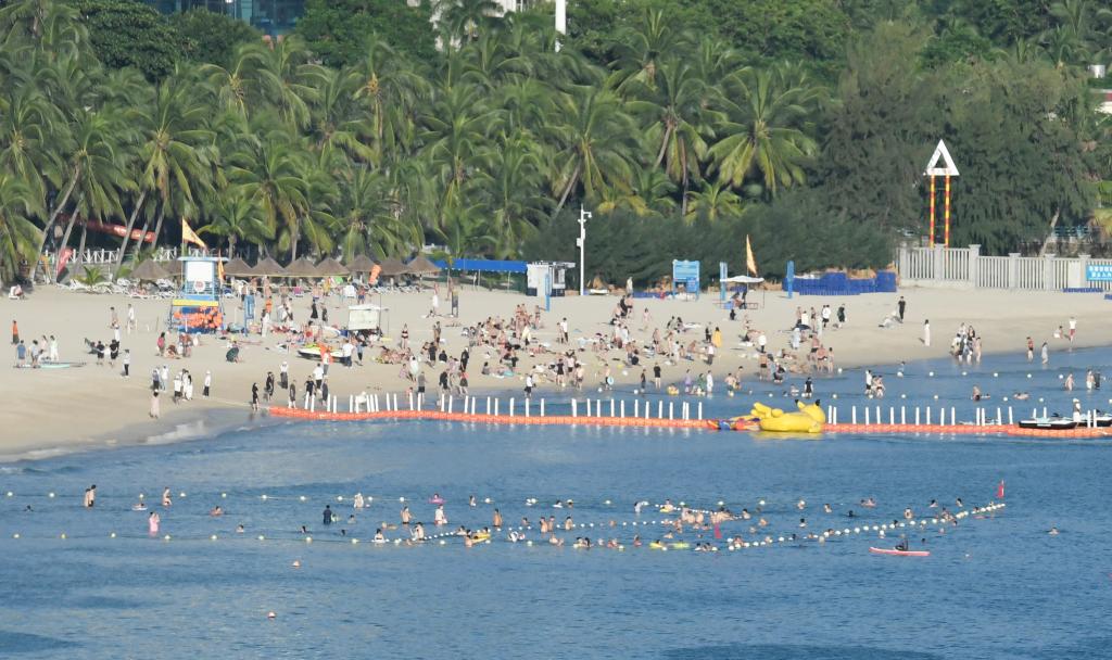 10月14日,游客在三亚市大东海旅游区游玩。