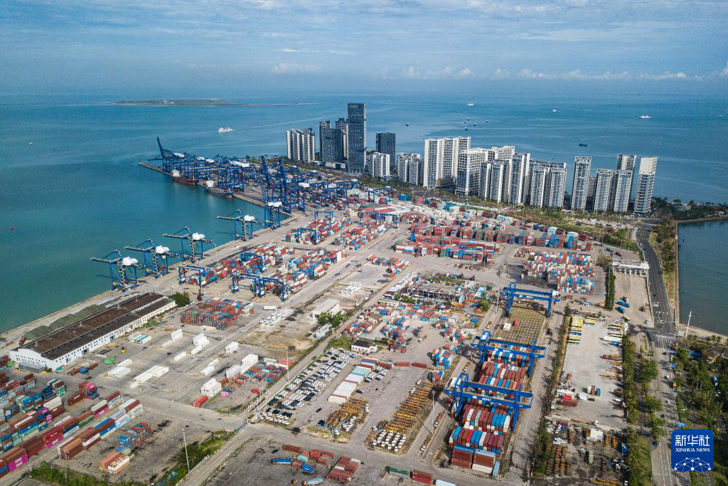 10月18日在海南省海口市拍摄的海口港集装箱码头(无人机照片)。
