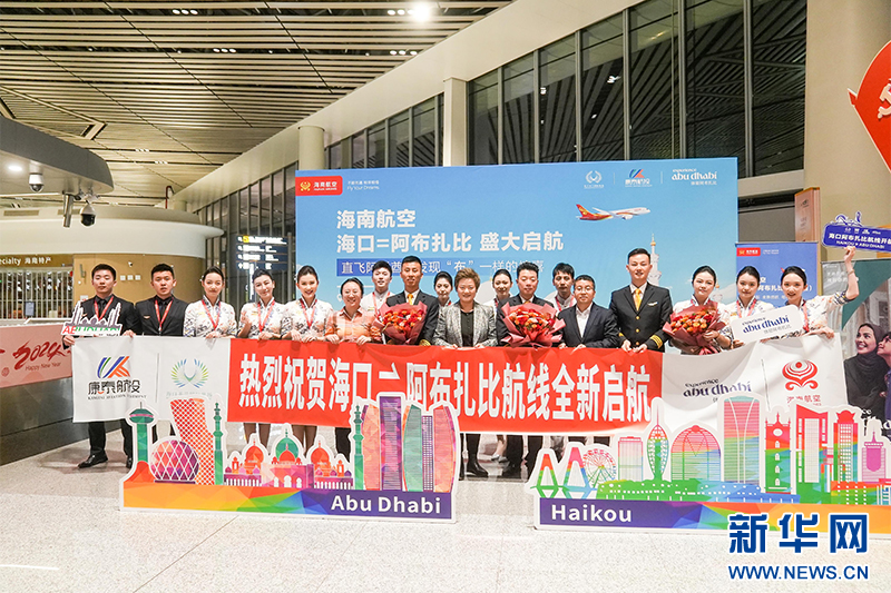 海南航空海口—阿布扎比首航航班机组合影。新华网发