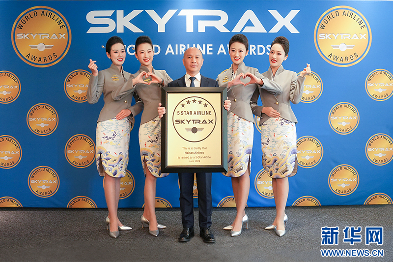 2024年6月24日,海南航空以高品质的服务及优质的产品第十三次蝉联“SKYTRAX五星航空”。新华网发