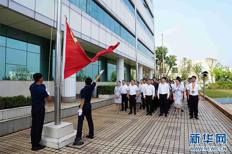 10月1日,海南航空开展“迎国庆 感党恩 同奋斗”主题升旗仪式活动。新华网发