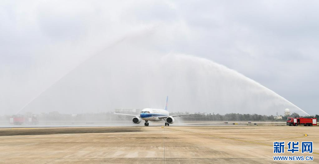 南航联合海口美兰国际机场举行“水门礼”接机仪式。新华网发