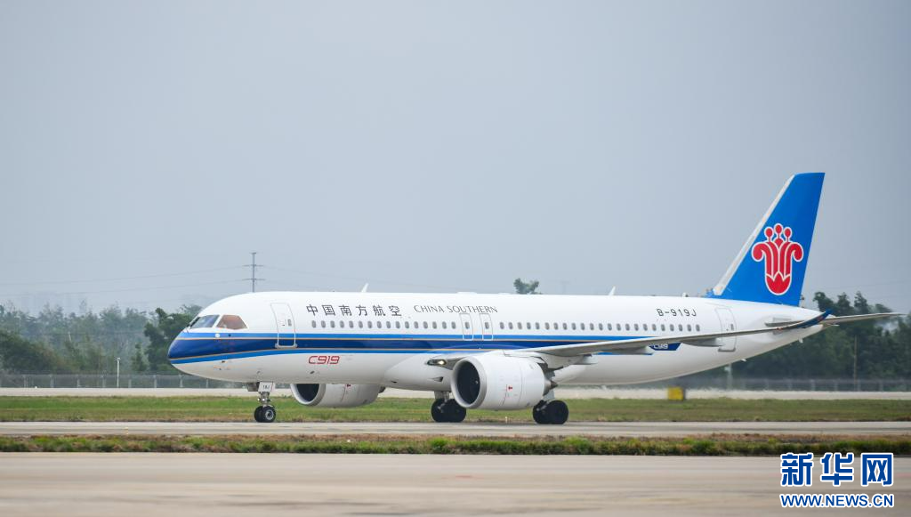 11日,南航C919飞机顺利飞抵海口美兰国际机场。新华网发