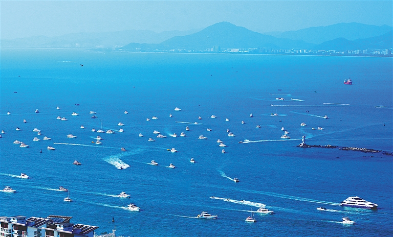 日前,在三亚,大批游客乘坐游艇出海观光。 海南日报全媒体记者 王程龙 摄