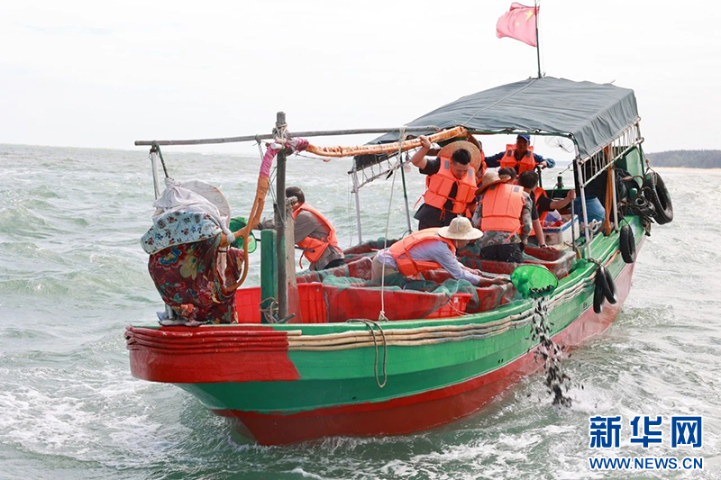 2023年8月8日,海南省二中院法官登船见证增殖放流鱼苗投放入海。新华网发