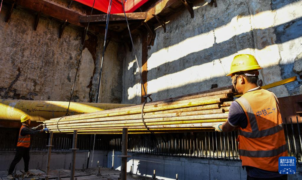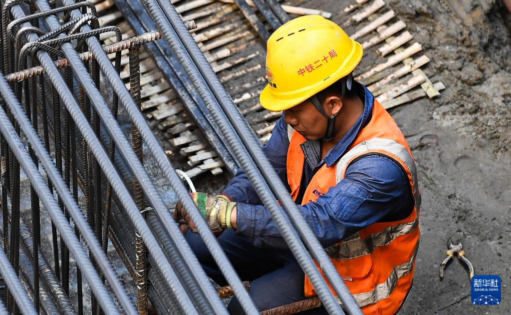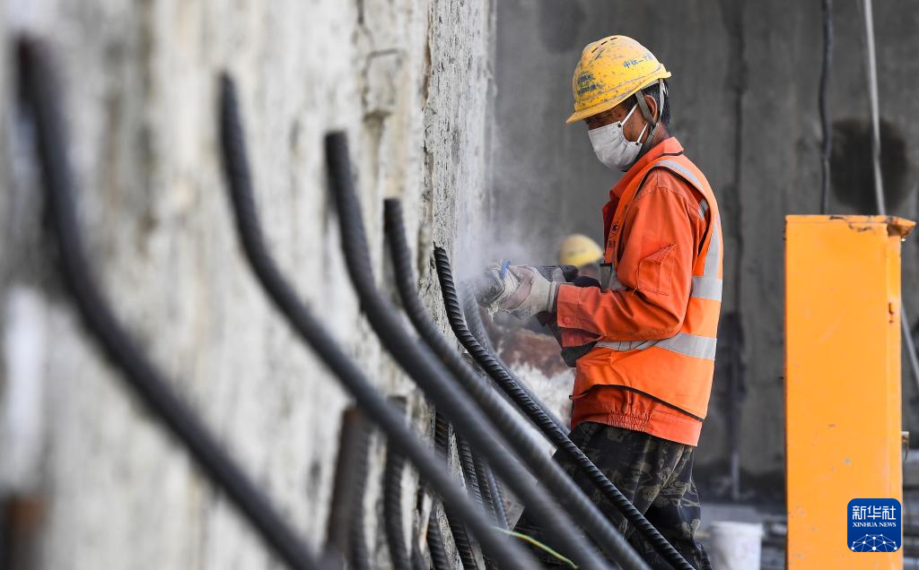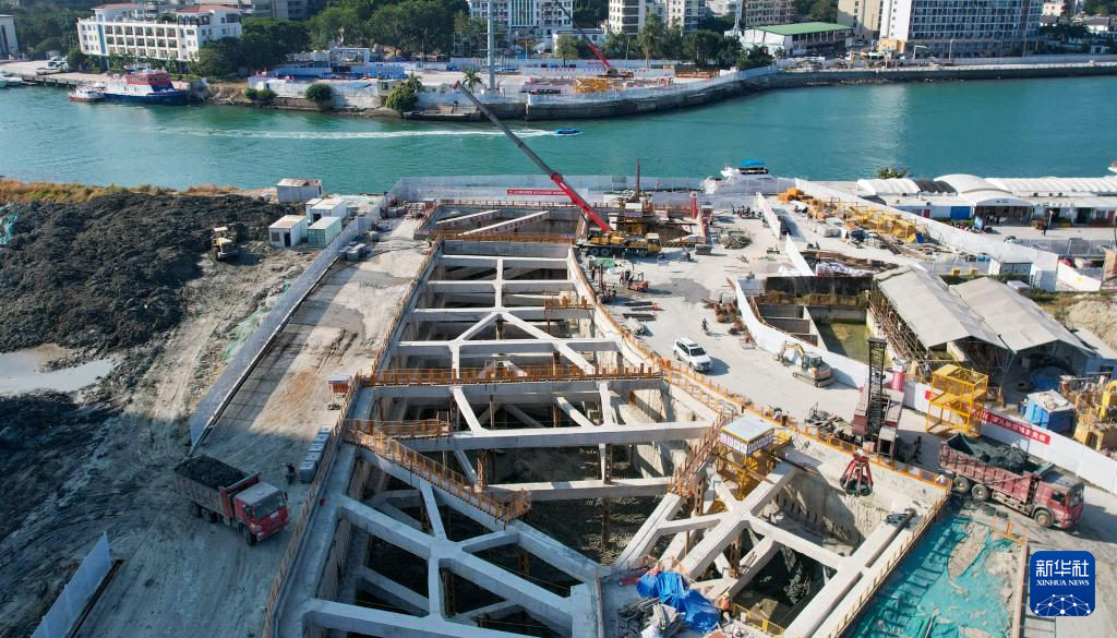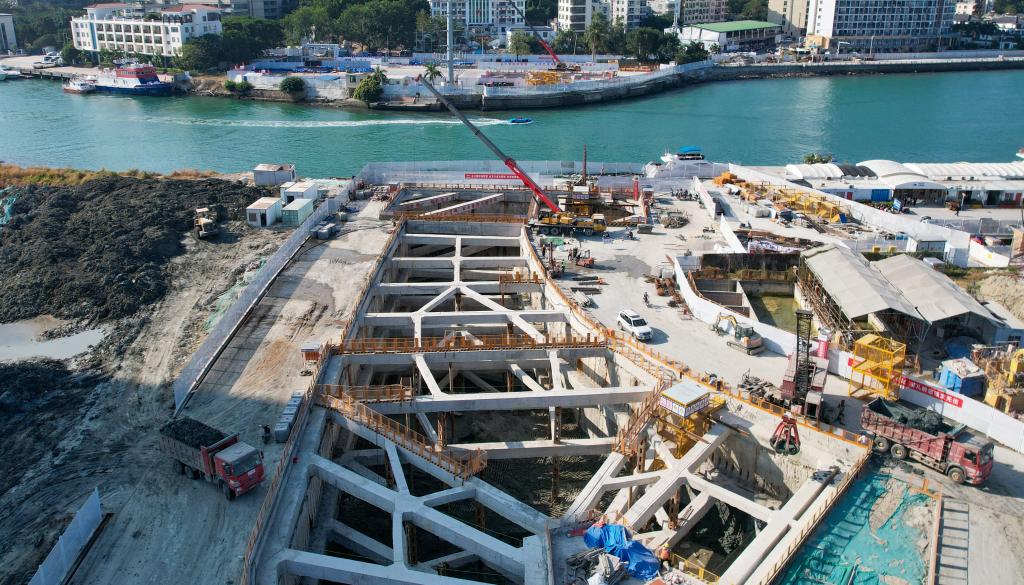 1月11日,工人在三亚河口通道工程项目工地施工。新华社记者 杨冠宇 摄
