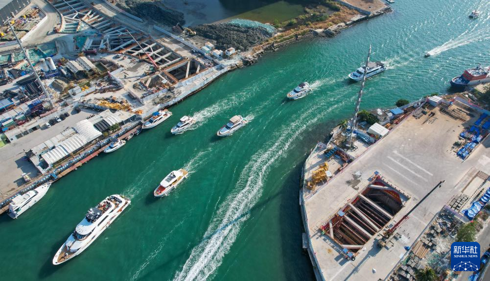 这是1月11日拍摄的三亚河口通道工程项目现场(无人机照片)。