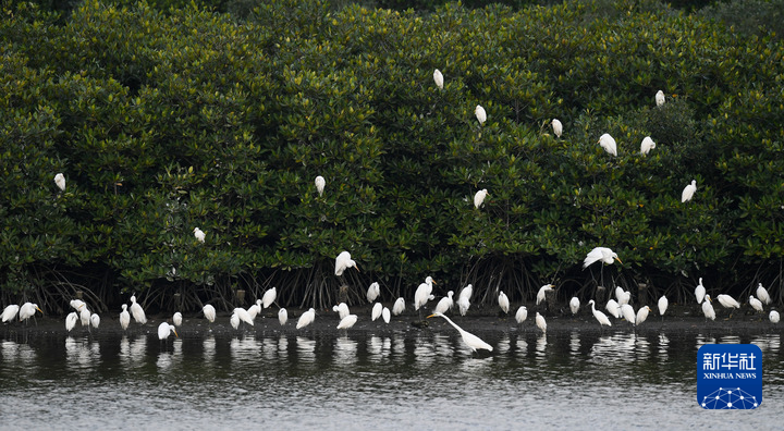 鹭鸟在海南东寨港国家级自然保护区内休息。新华社记者 杨冠宇 摄