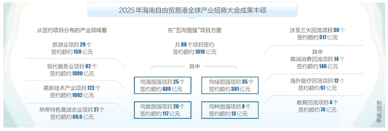 2025年海南自由贸易港全球产业招商大会签约项目265个,总签约额约2336亿元