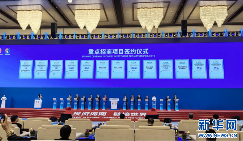 全球产业招商大会重点招商项目签约仪式现场。新华网发
