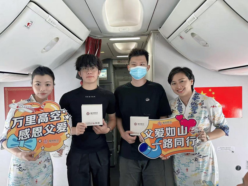 为弘扬中华民族孝亲敬老的传统美德,营造温馨的节日氛围,福州航空在2025年6月15日父亲节当天,于FU6511福州-贵阳航班上开展“万里高空,感恩父爱”主题客舱活动,与旅客共同度过一段充满温情的空中时光。