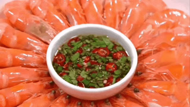 烹饪后的虾肉呈现出诱人的橙红色,