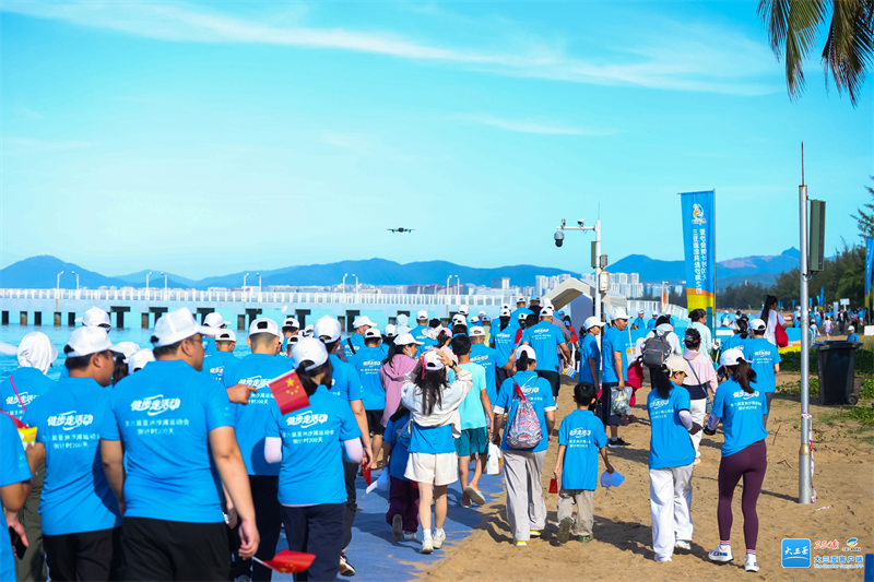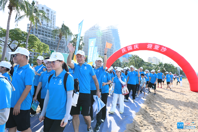 随后,来自社会各界的1000余名群众代表热情加入了沙滩健步走行列,队伍沿美丽的海岸线从海月广场行进至金鸡岭街路口并折返,全程约2公里,生动展现了三亚市民迎接亚沙会的活力与热情。