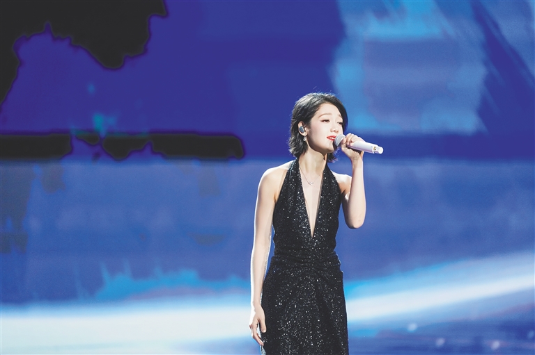 歌手希林娜依·高在第七届海南岛国际电影节开幕式上献唱。