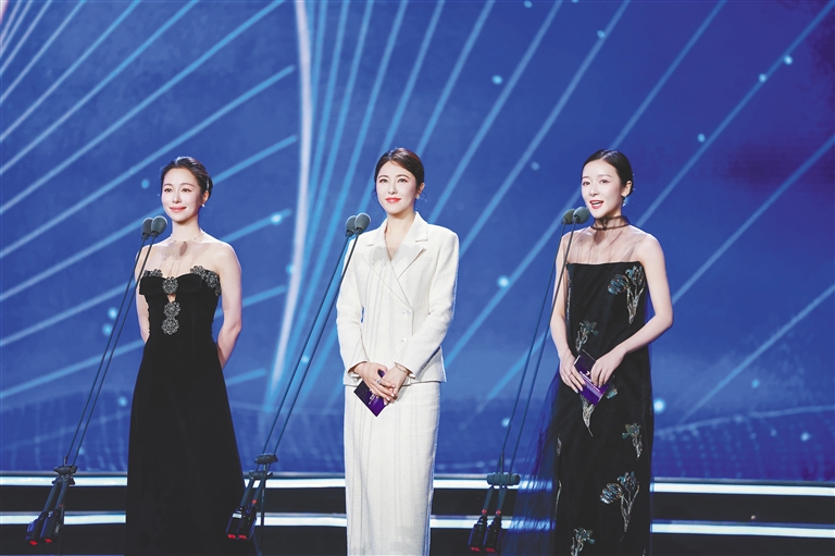 演员江一燕、曾黎、徐娇(从左到右)亮相开幕式。