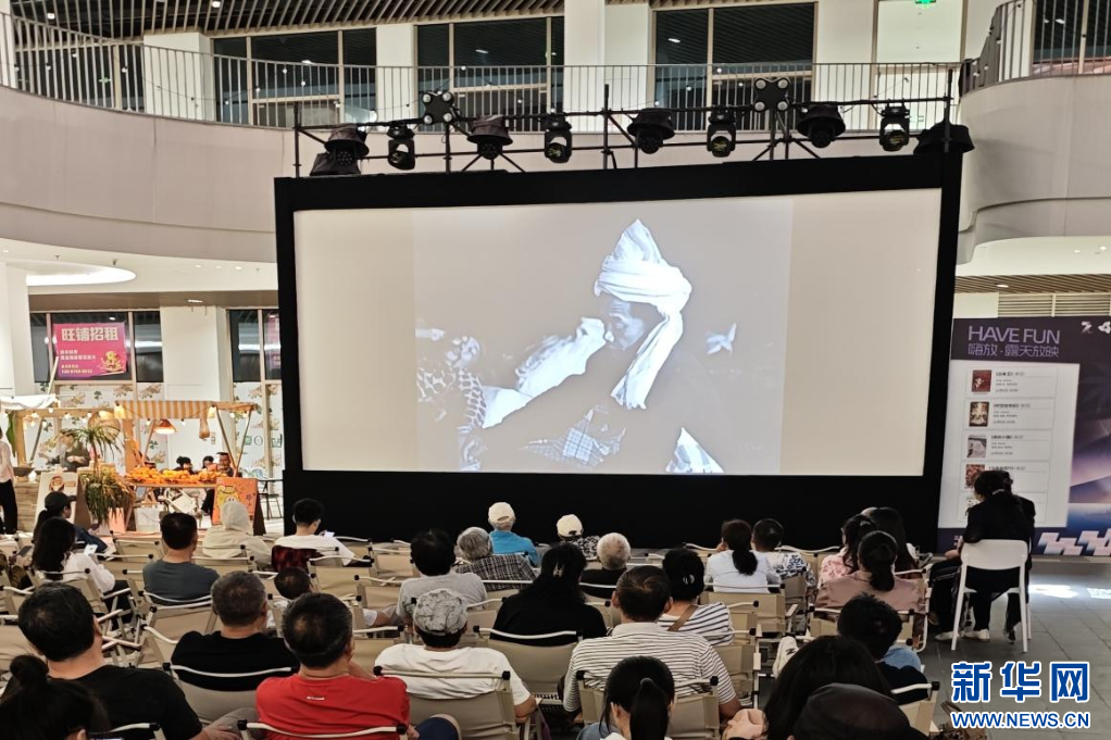 三亚夏日站中央广场嗨放·露天放映电影展映现场。新华网发