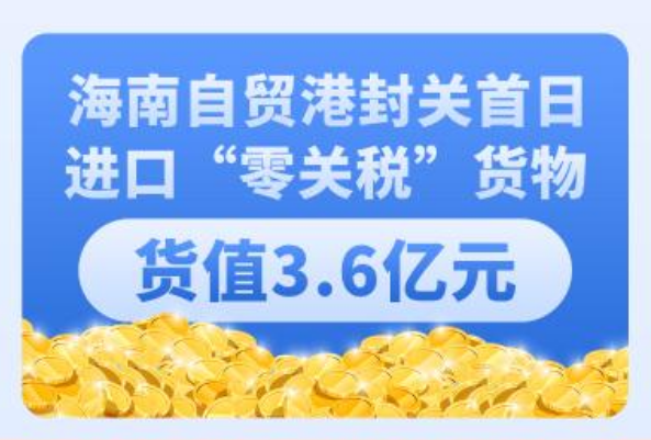 新华社海口12月19日电(记者吴茂辉)12月18日是海南自由贸易港全岛封关运作首日,海口海关19日发布了封关首日全岛“一线”“二线”货物通关数据。经统计,进口方面,海关监管“一线”进口“零关税”货物货值3.6亿元,主要为原油、航空器材等;监管进口放宽贸易管理措施货物货值34.7万元,主要为“两头在外”保税维修医疗设备。出岛方面,海关监管“二线”内销加工增值免关税货物货值1468.9万元,免征关税80.8万元,主要为医疗器械、药品、食品等,涉及海口新海港、海口港(马村港区)、海口美兰机场、洋浦港等9个“二线口岸”。