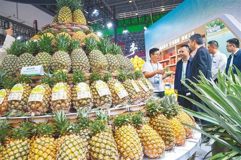 多种凤梨品种亮相冬交会。新华网发(袁琛 摄)