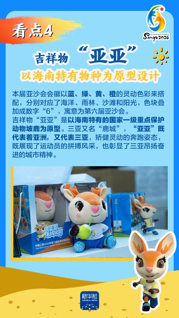 第六届亚洲沙滩运动会(以下简称“亚沙会”)将于2026年4月22日至30日在海南三亚举行,赛事历时9天。作为海南自由贸易港封关运作后迎来的首个国际大型综合性体育盛事,亚沙会都有哪些看点?为何值得期待?国新办12日发布会做了详细介绍,一起来看。