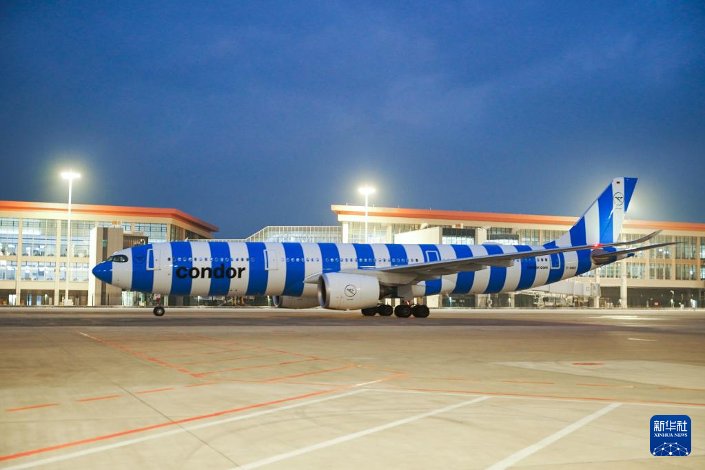 1月14日,执飞法兰克福—曼谷—三亚航线的DE2362次航班飞抵三亚凤凰国际机场。新华社发