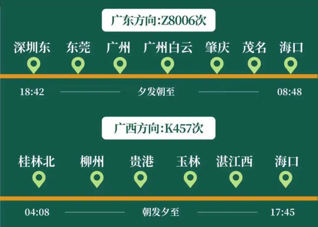 广东方向:Z8006次列车串联粤港澳大湾区核心城市。该线路由深圳始发,经停东莞、广州、肇庆、茂名、海口等城市。该列车实行夕发朝至模式,18:42从深圳东站出发,次日上午08:48抵达海口站,既能最大化利用出行时间,球迷选择卧铺过夜还可节省一晚住宿费用。