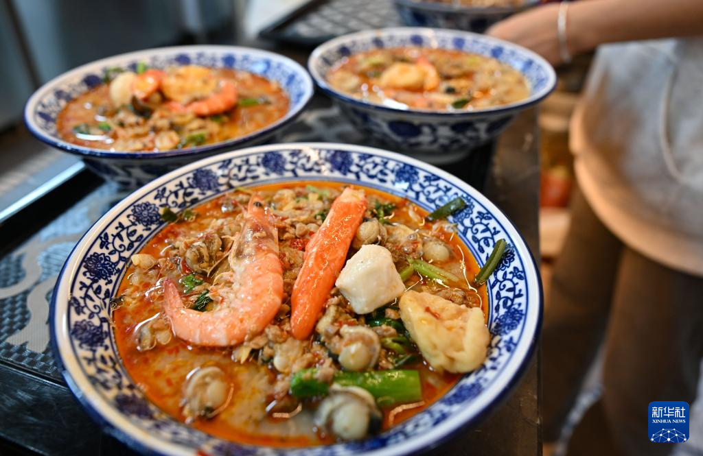 1月29日,游客在文昌市铺前镇一家糟粕醋餐饮店品尝糟粕醋火锅。新华社记者 郭程 摄