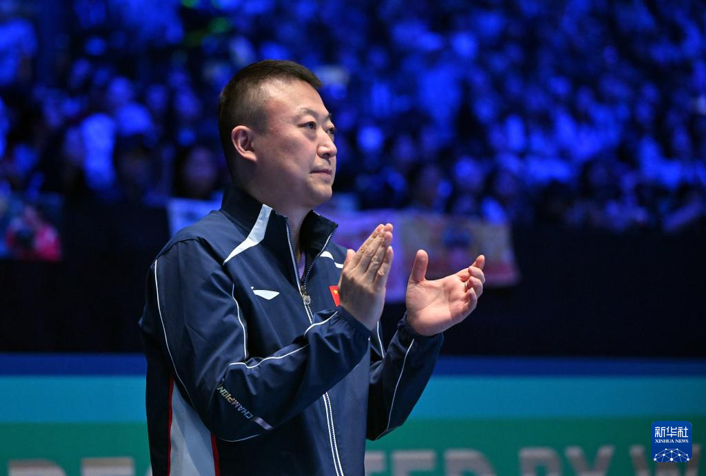 2月4日,教练马琳在比赛中为孙颖莎鼓掌。新华社记者 郭程 摄