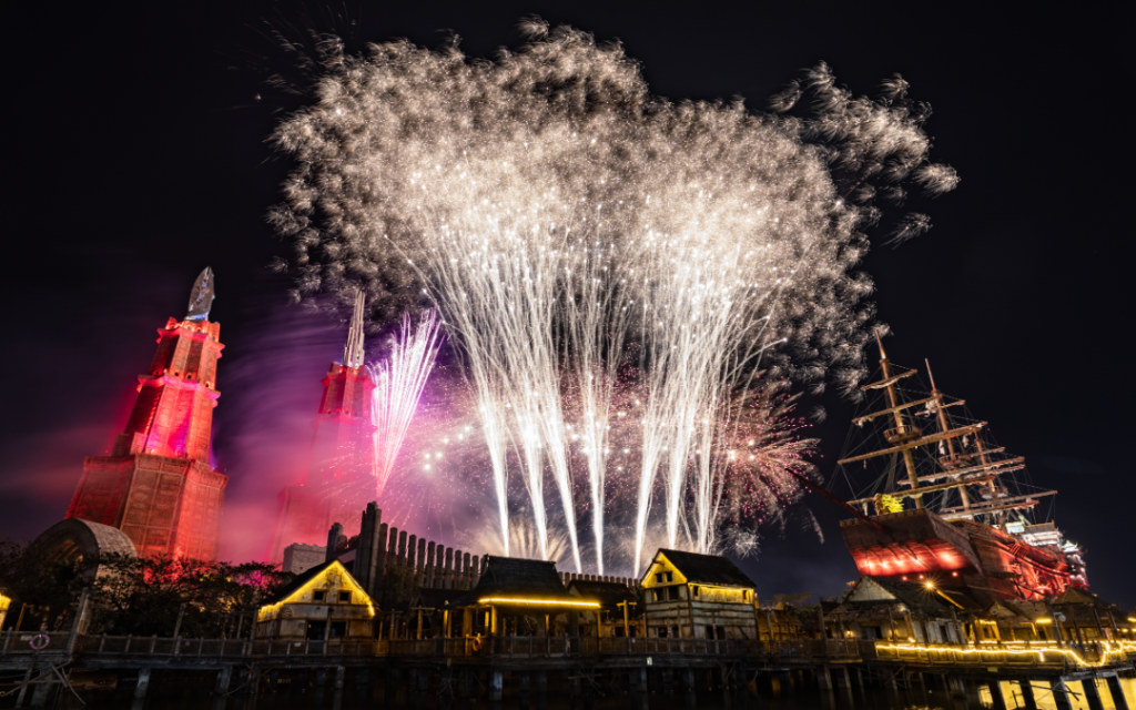 海南长影奇幻乐园烟花秀活动现场。