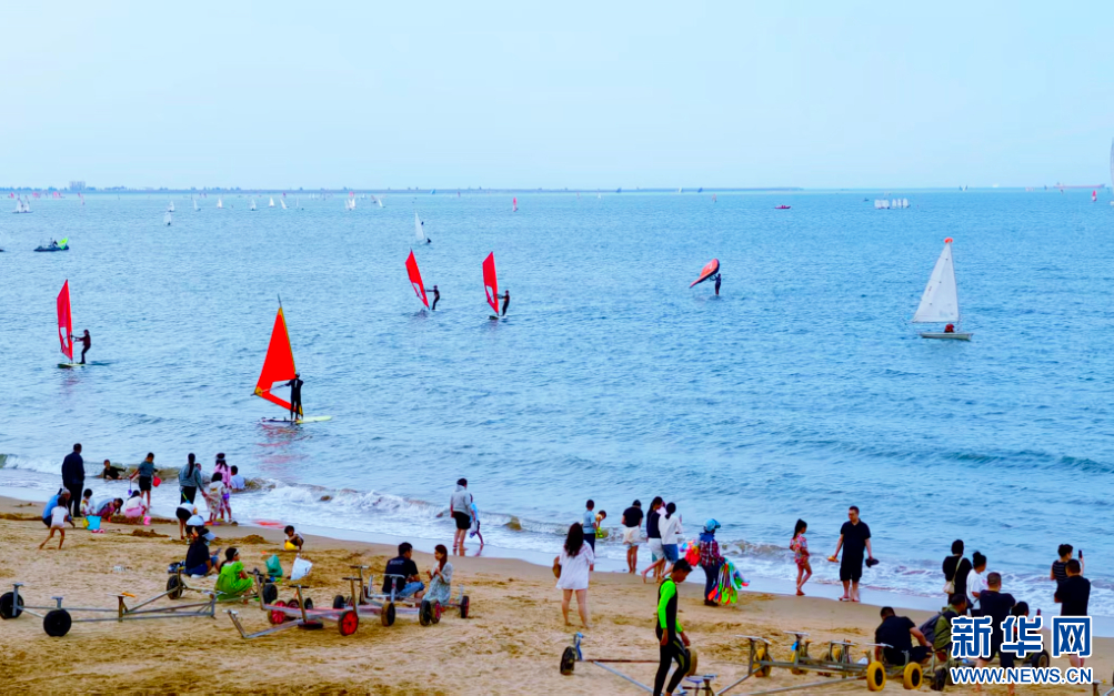 春节期间,海口假日海滩的滨海景观。