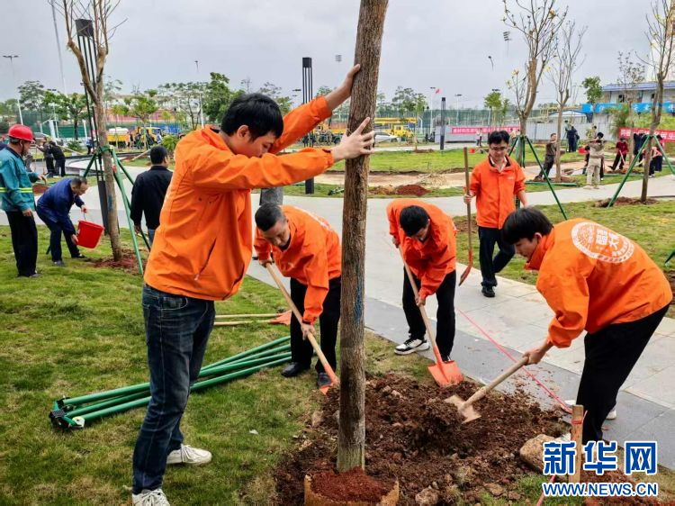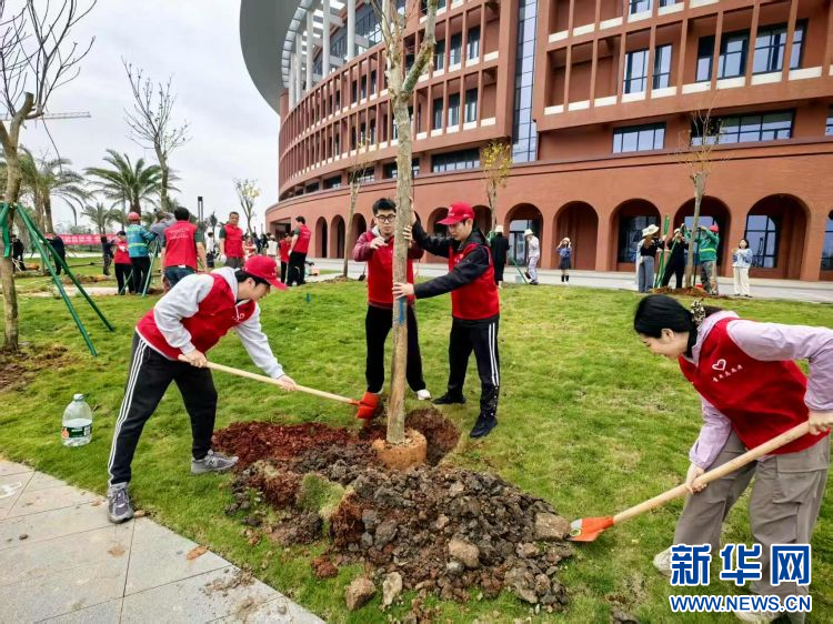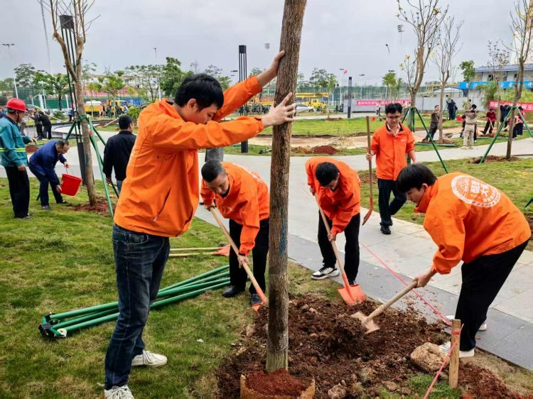 活动现场,约300名干部职工、志愿者、师生及企业代表共种下黄花风铃木、火焰木等木本植物125株,让生态文明理念在亲手植绿的实践中落地生根。