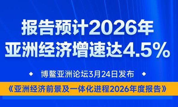 新华社海南博鳌3月24日电(记者任军、王存福)博鳌亚洲论坛3月24日发布《亚洲经济前景及一体化进程2026年度报告》。报告预计,2026年亚洲经济增速将达4.5%,仍是世界经济的主要增长引擎。