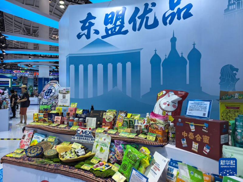4月14日,在广西壮族自治区展区的中国-东盟特色商品汇聚中心展台,该中心为中国与东盟国家的“土特产”企业提供经贸交流平台。新华社记者 夏天 摄