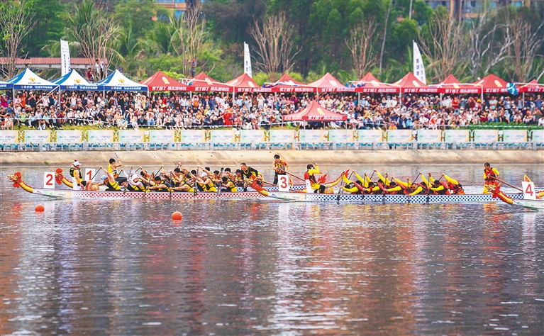4月20日,2026年“海南三月三·山海同心圆”东方主会场重点活动——“活力东方”龙舟公开赛在东方市北黎河激情开赛,为海南“三月三”活动增添了浓厚的竞技氛围。赛事吸引了全省12支队伍同场竞技。海南日报全媒体记者 李天平 摄